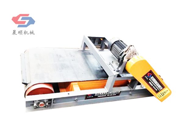 電磁除鐵器的基礎上增加了驅動電機、滾筒、帶刮板的缷鐵膠帶等組成的缷鐵機構。在工作過程